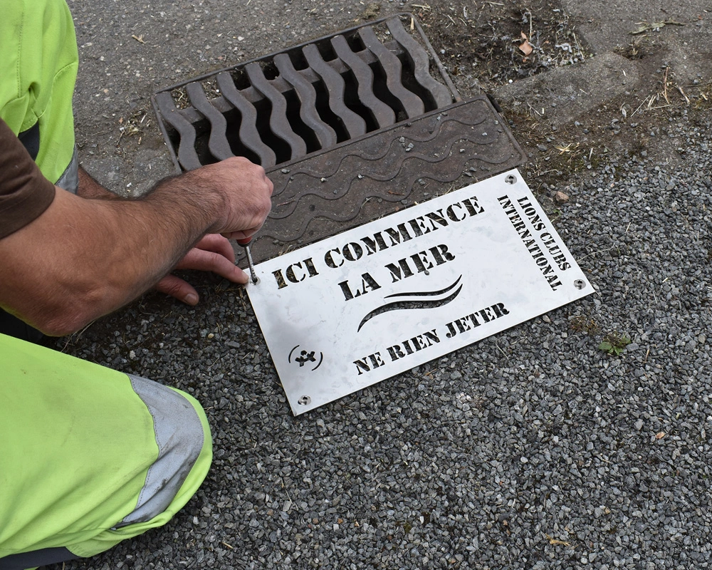 Après le rallye Détox, la conférence sur les polluants et l'atelier "les polluants dans ma cuisine", avait lieu vendredi 14 juin, à Decazeville, la pose de 10 premières plaques inox (20 plaques supplémentaires seront posées ultérieurement) réalisées par les lycéens du Lycée La Découverte, pour l'opération "Ici, commence la mer". Trois partenaires sont associés à ce projet : la Ville de Decazeville, Le Lions club et le département de l'Aveyron. Cette opération à pour but de sensibiliser le public à l'impact des déchets solides et liquides (solvants, pesticides, peintures, graisses, mégots, déjections canines...) captés par les avaloirs d'eau pluviale et qui rejoignent les eaux (mer, océans...). En effet, tout ce qui est jeté au niveau des grilles et avaloirs d’eaux pluviales ne rejoint pas les stations d’épuration, comme on le pense trop souvent, mais rejoint bien directement les cours d’eau, puis la mer. Il est donc indispensable d'avoir les bons réflexes et de prendre conscience, par toutes et tous, des gestes à éviter.