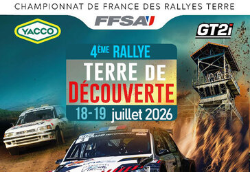 Les 18 et 19 juillet prochains aura lieu le 4ème Rallye terre de Découverte comptant pour le Championnat de France de Rallye sur Terre.....