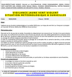 Communiqué de la Préfecture de l'Aveyron : Vigilance Jaune Vent violent